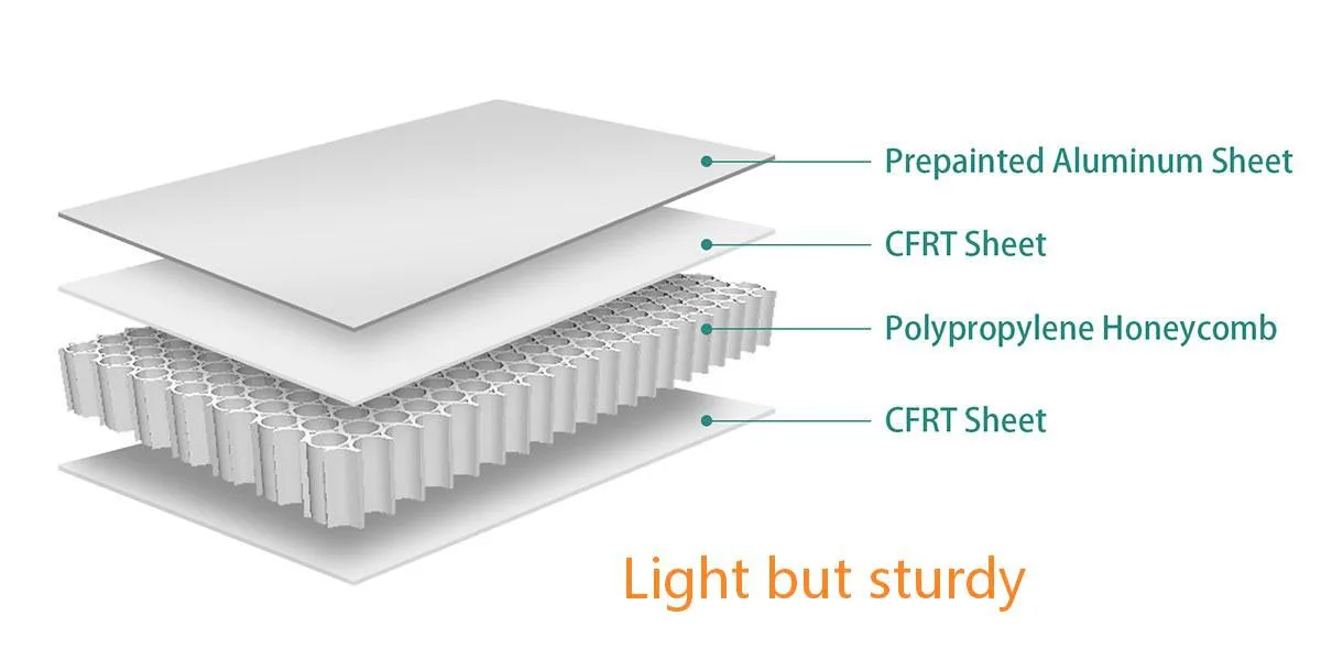 ●Pətək həlli: Həddindən artıq yüngülləşdirmə. Kompozit panellərimiz poladdan bərabər və ya daha çox güc təklif edir bədən çəkisini 30% -dən 50% -ə qədər azaltmaqla.